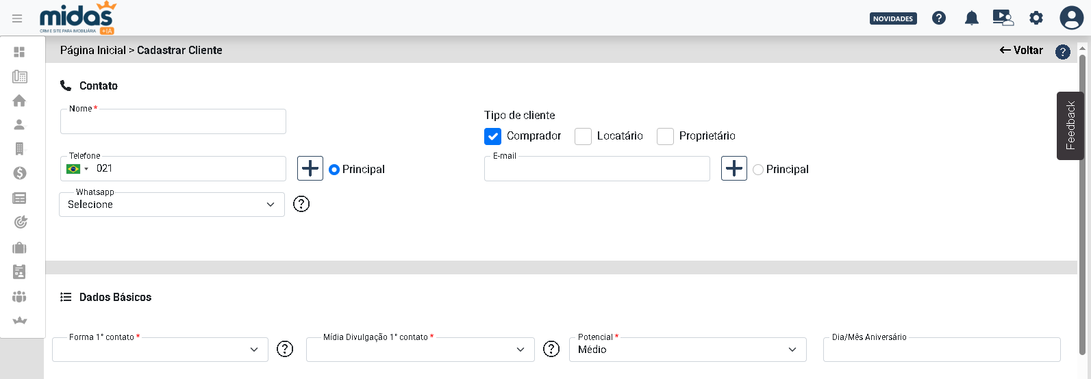 - Informe o Potencial do cliente (somente para Comprador ou Locatário).