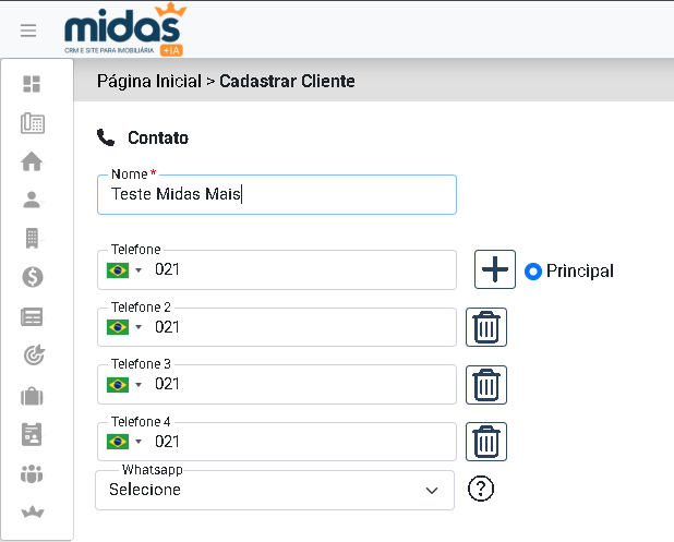 - É possível cadastrar vários números de telefone, o primeiro informado será considerado como principal.