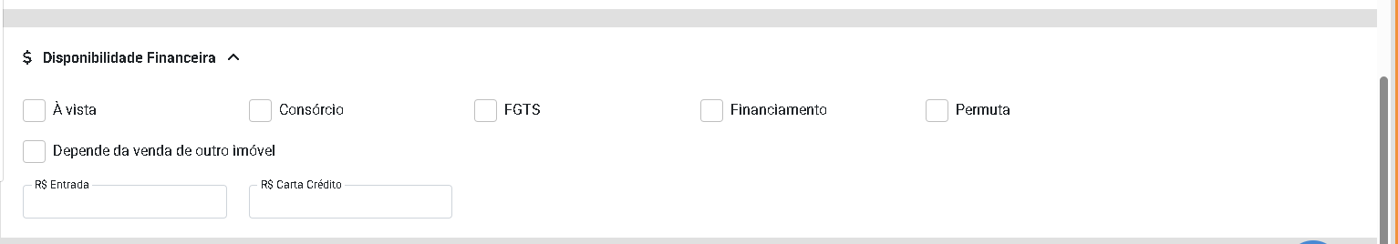 - Disponibilidade Financeira (somente para cliente Comprador): Informe os valores disponíveis.