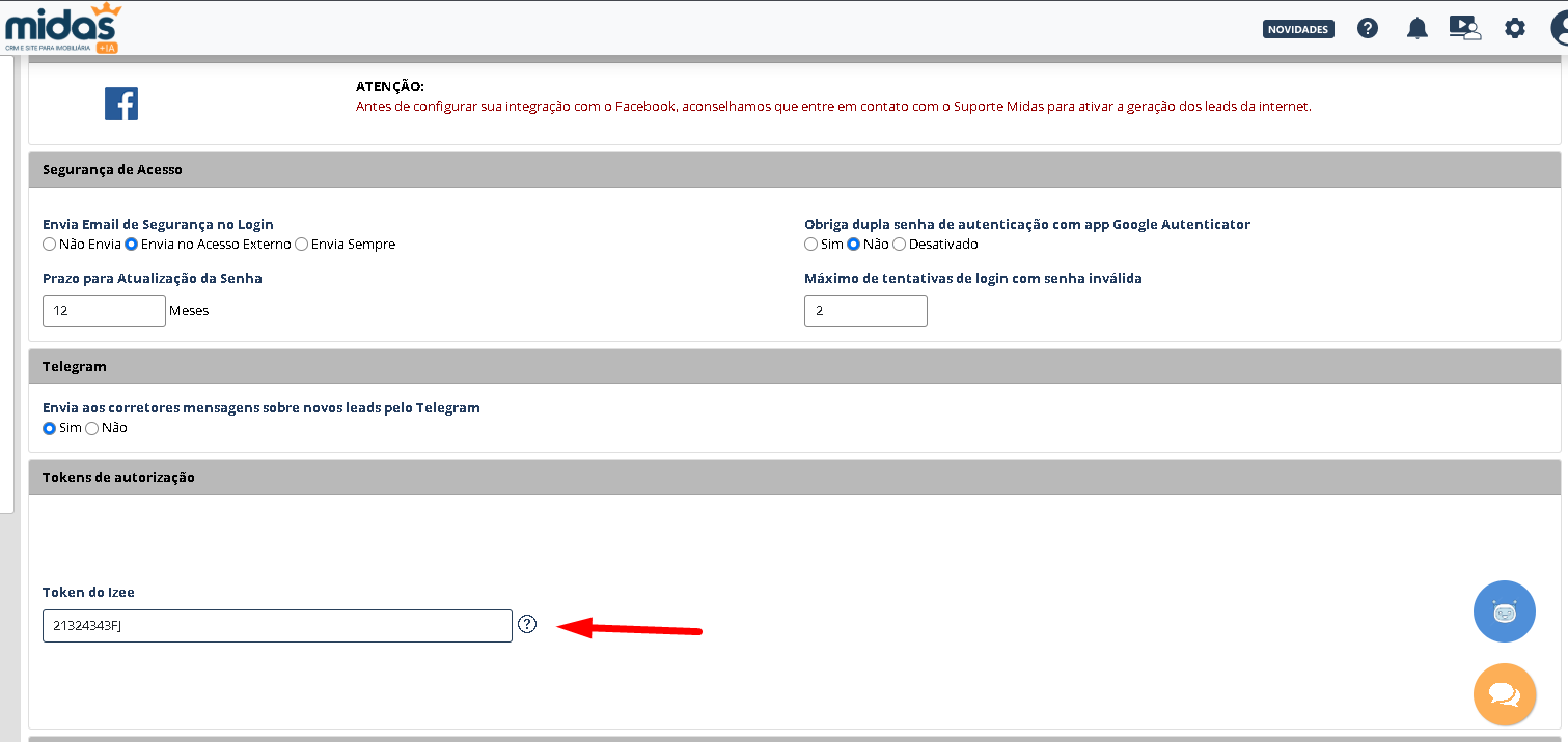 3. Cole o Token fornecido pelo Izee;