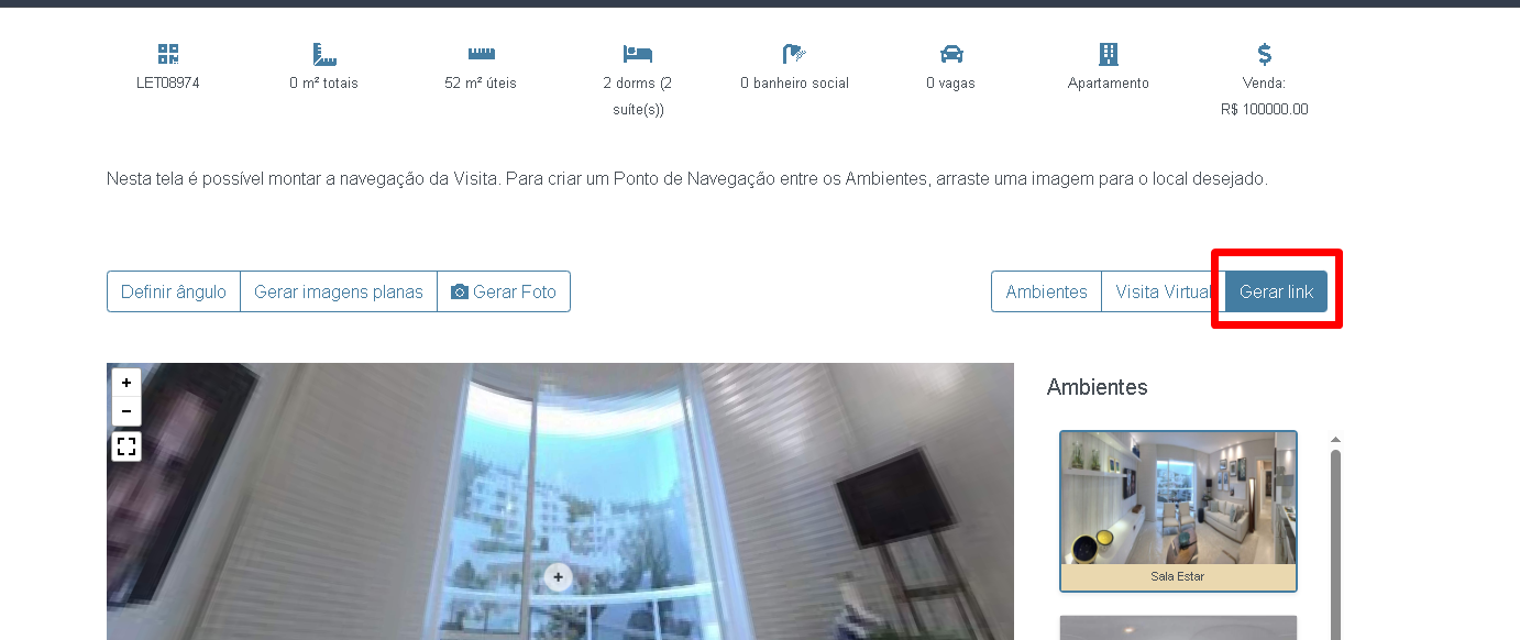 Quando concluir a criação da visita virtual, clique em Gerar Link.