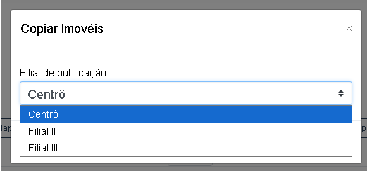 Com a devida permissão, o sistema permitirá a criação de cópias de imóveis para outras filiais. Essas cópias poderão ser publicadas, mas não poderão ser editadas. Será possível apenas detalhá-las para verificar se as informações correspondem às do imóvel original.