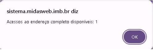 Clicando nesse ícone, o sistema mostrará o complemento do endereço (endereço completo) e informará quantas visualizações restantes o usuário ainda possui naquele dia, veja a mensagem que é exibida: