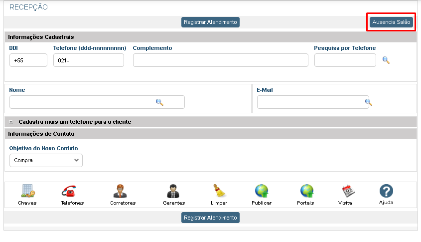 Ps: Se a recepcionista precisar cadastrar um lead cuja filial não seja a dela, é necessário que a permissão ‘Encaminha cliente recepcionado para todas as filiais’ esteja marcada como ‘sim’.