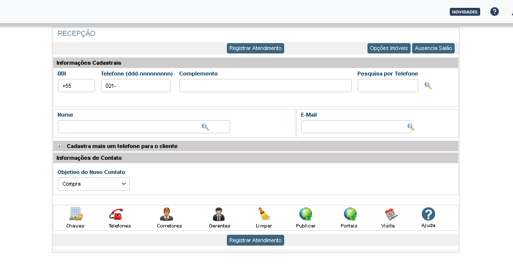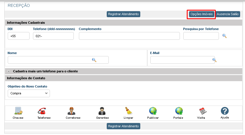 • Recado: Caso queira mandar algum recado para o corretor, pode preencher este campo e marcar a opção ao lado Envia e-mail corretor. O sistema fará o envio do e-mail quando a ligação for registrada e a informação também ficará disponível na tela de atendimento de clientes do corretor. - Clique em Registrar.