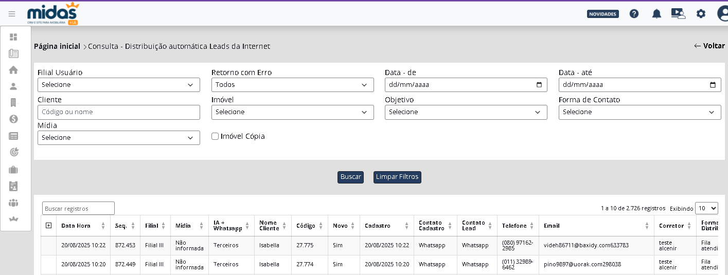 Observação: Leads oriundos de Retornos Automáticos virão com a Forma de Contato como Mídias Digitais.