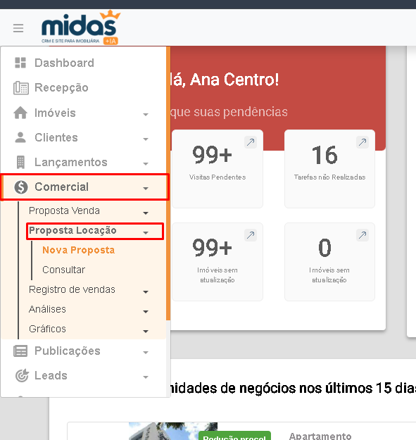- Acesse Comercial > Proposta de locação > Nova proposta